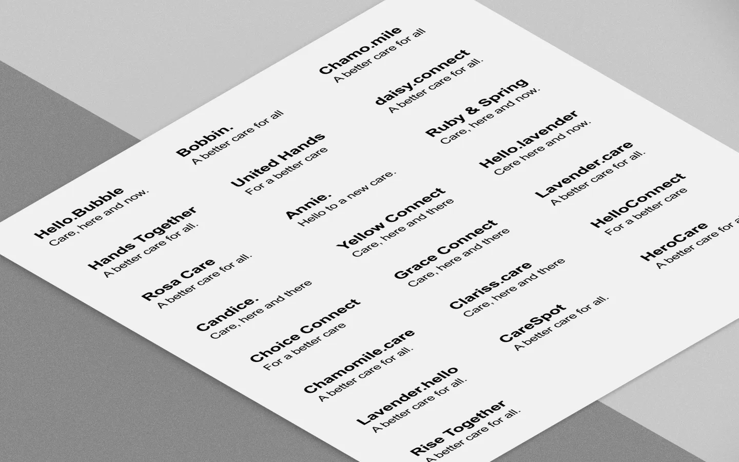Initial brainstorming was conducted with a goal at finding a name that rhymes appropriately whilst connotating friendliness and approachability.