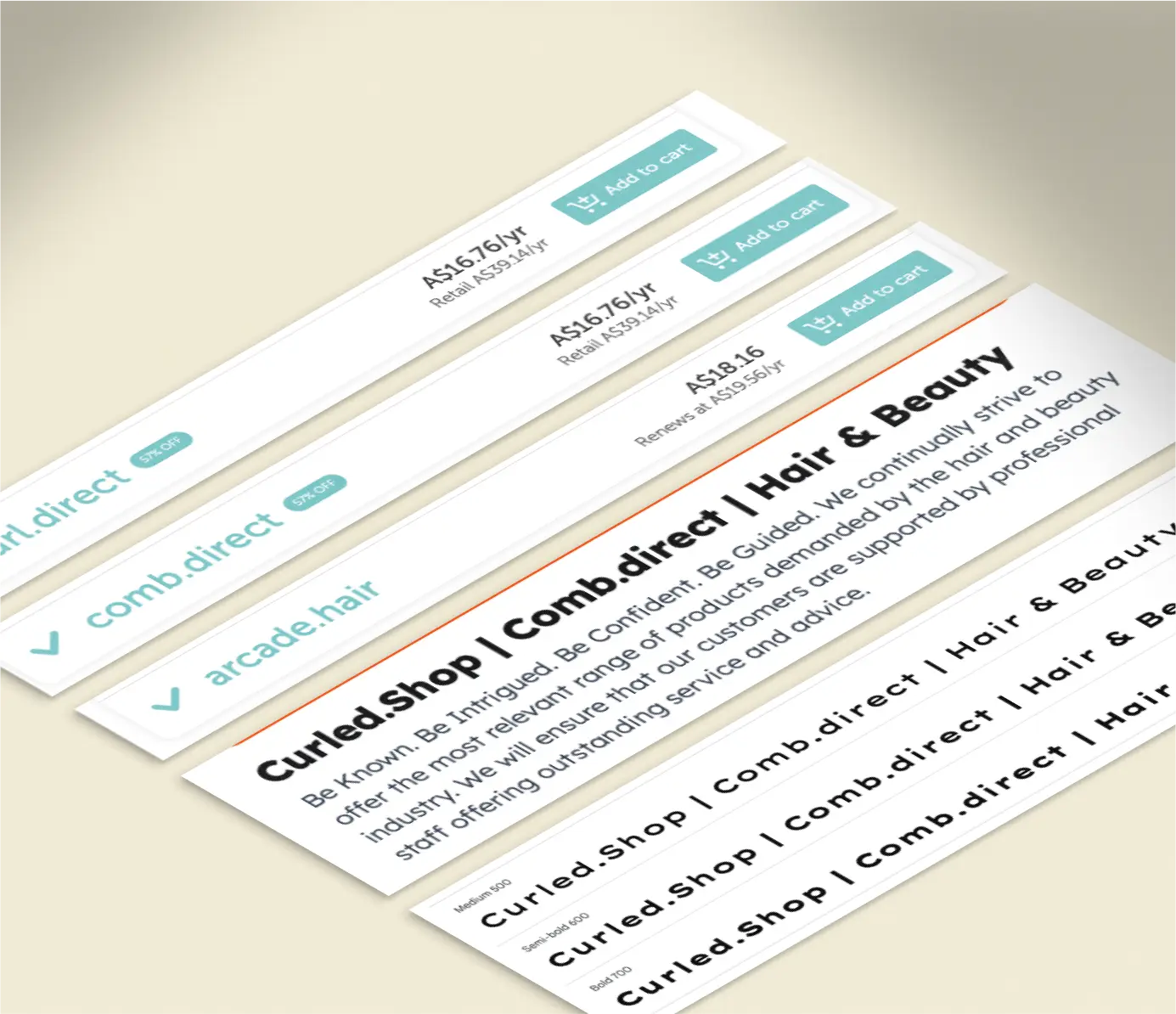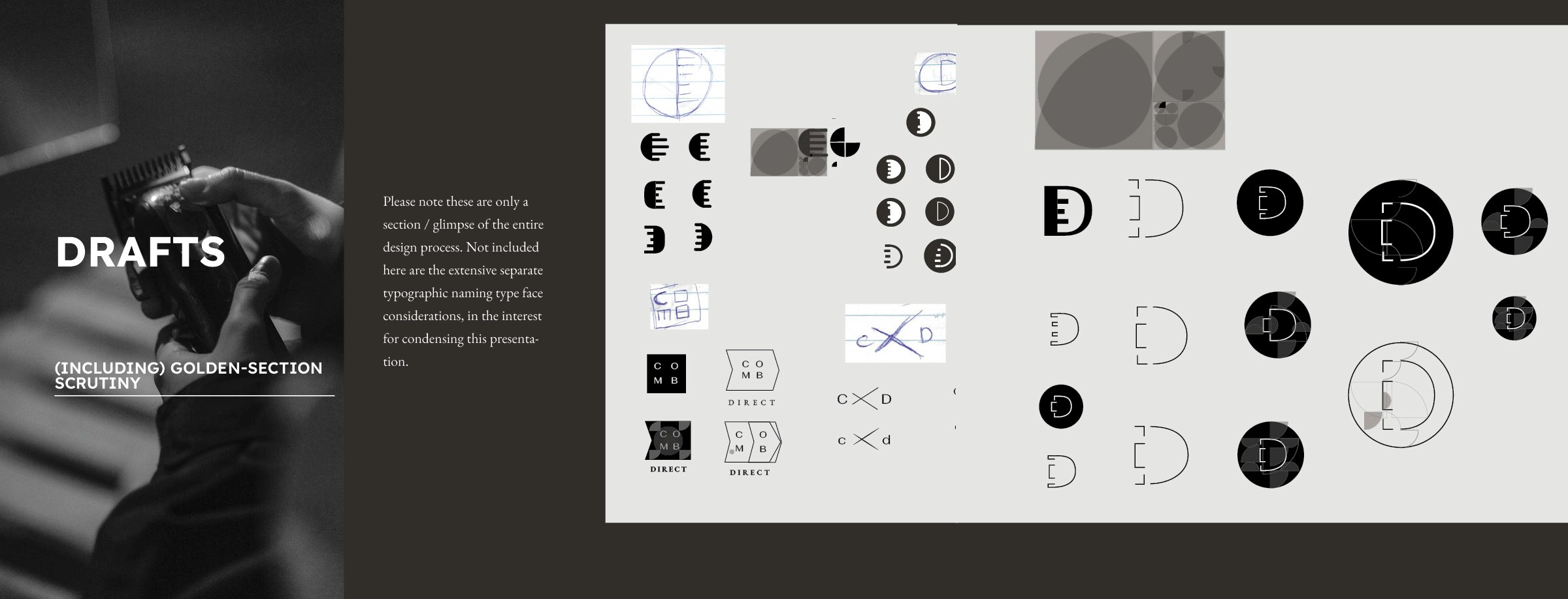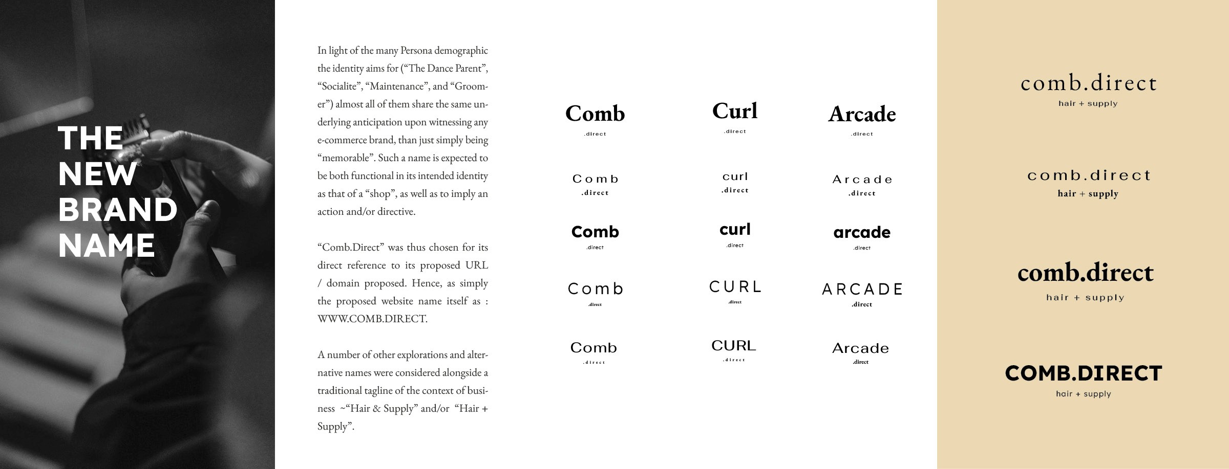 The Concept name(s) "Comb" and "Direct" were considered as they immediately hint the company's long history for delivering and supplying for the hair and salon industry. As well, combining them together conveniently forms the desired URL/domain name.