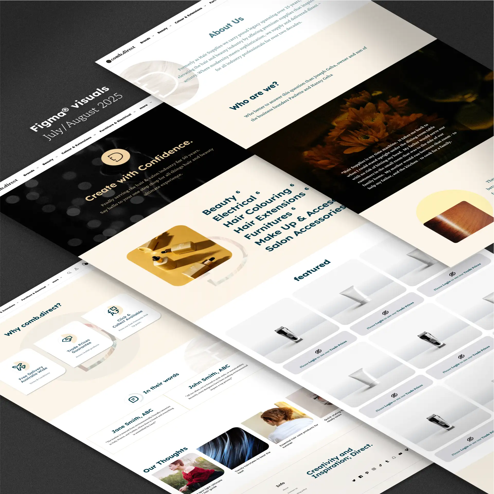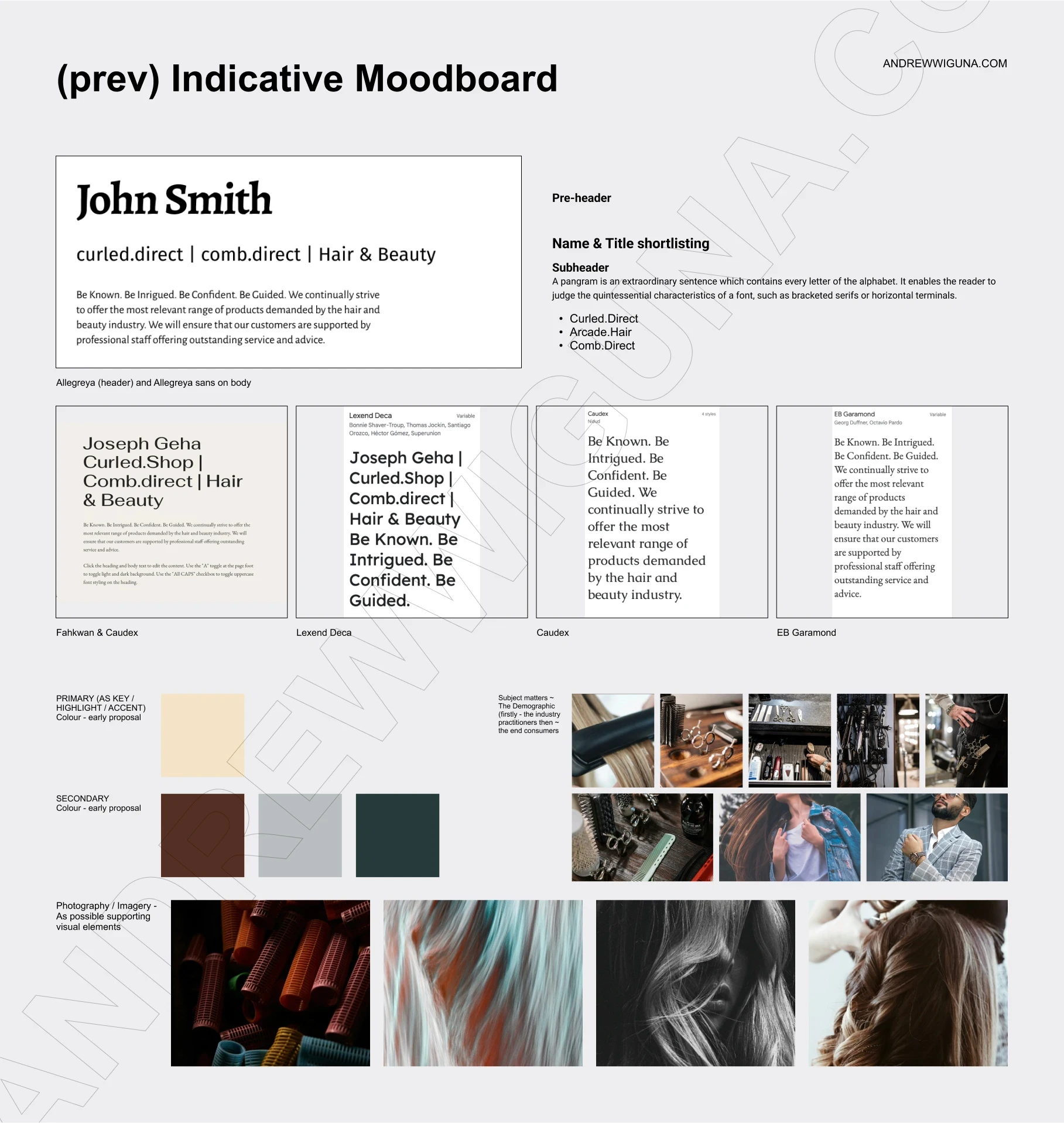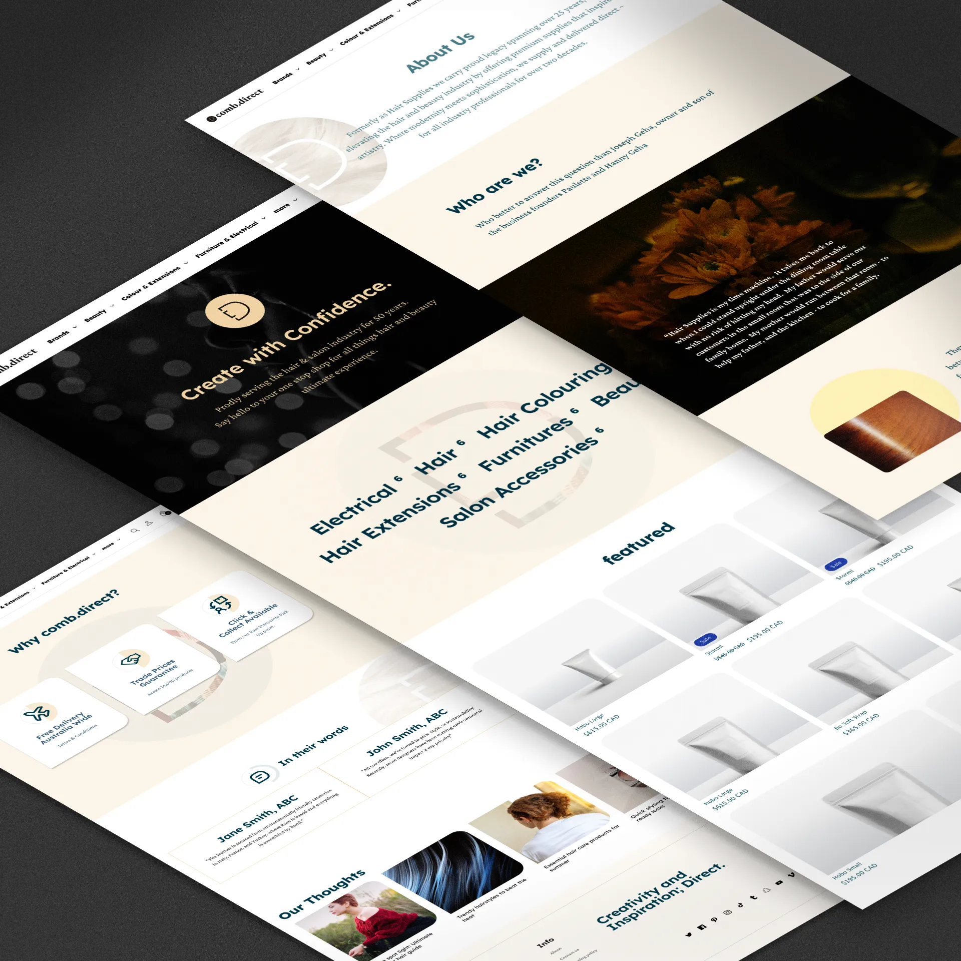 "Comb.Direct" as proposed title for both the company name and domain URL. Synergy between letterform/s C, D to coincide and signify tools of the trade (the hair clip and taper). Earthy colour scheme commemorating proud and long-standing 50 years of servitude. And - after much functional analysis of Shopify's native offerings inbetween three (3) stock themes ~ a fully-on-brand and tailored build made possible with much needed brand story-telling.