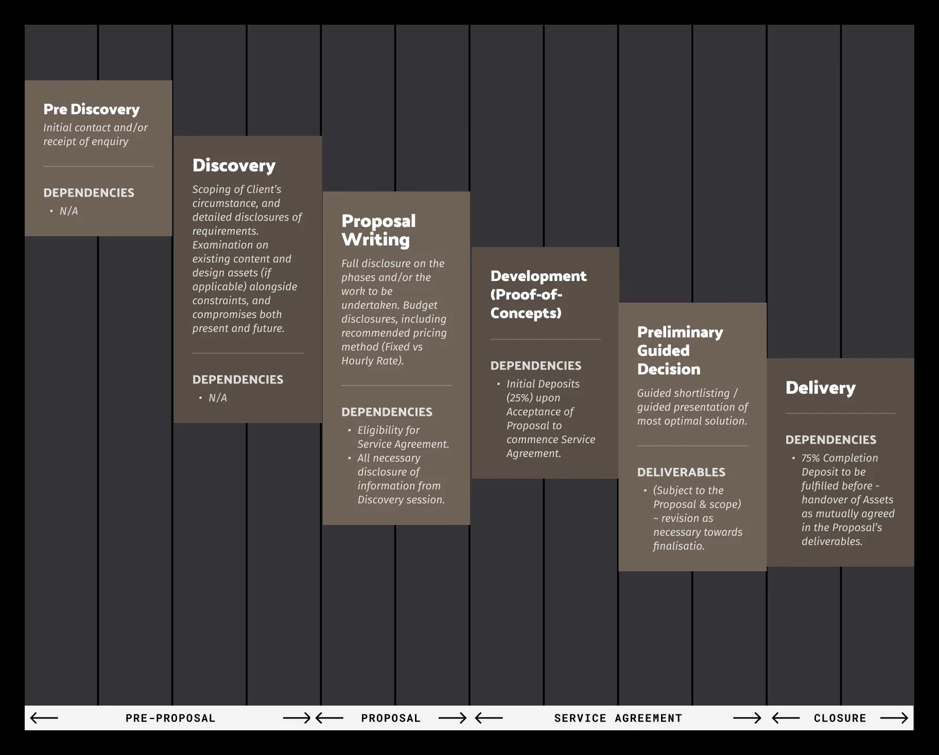 My Service consists of six (6) phases divided into Pre-Proposal, Proposal, Service Agreeement and Closure.